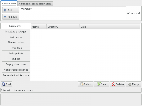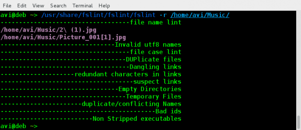 $ /usr/share/fslint/fslint/fslint -r /home/avi/Music/