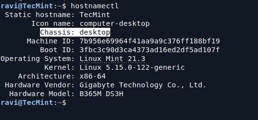 这hostnamectl命令提供了一种检查系统机箱类型的简单方法。