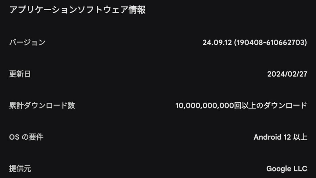 - 应用程序版本 v24.09(版本:24.09.12 (190408-610662703))更新将于 2024 年 3 月 8 日星期五左右分发到 Android 版本的“Google Play Services”应用程序。