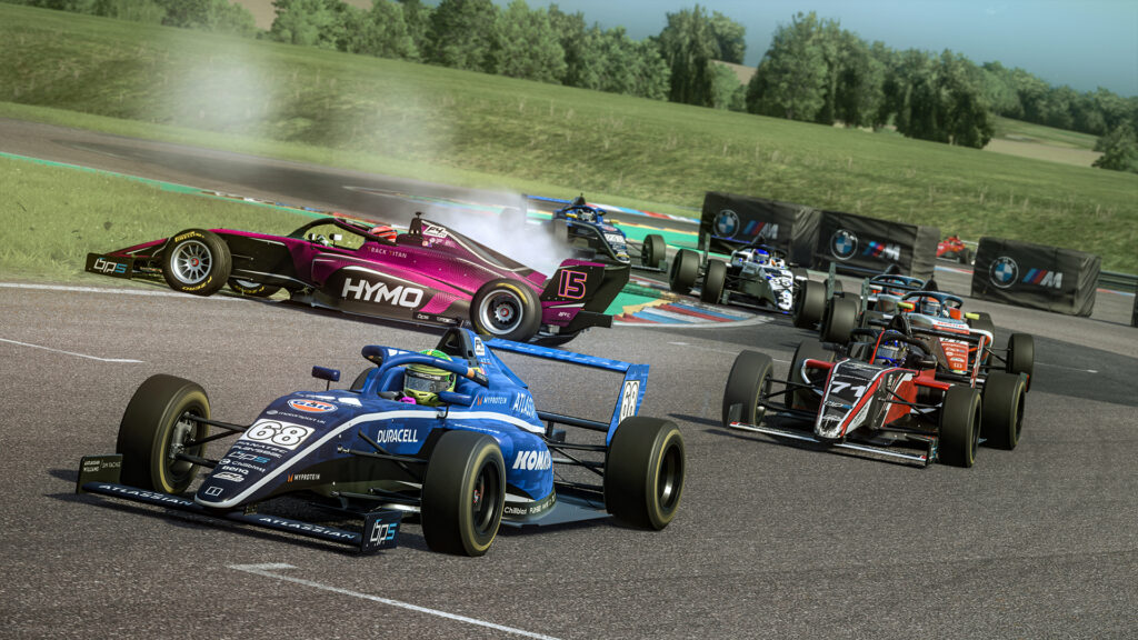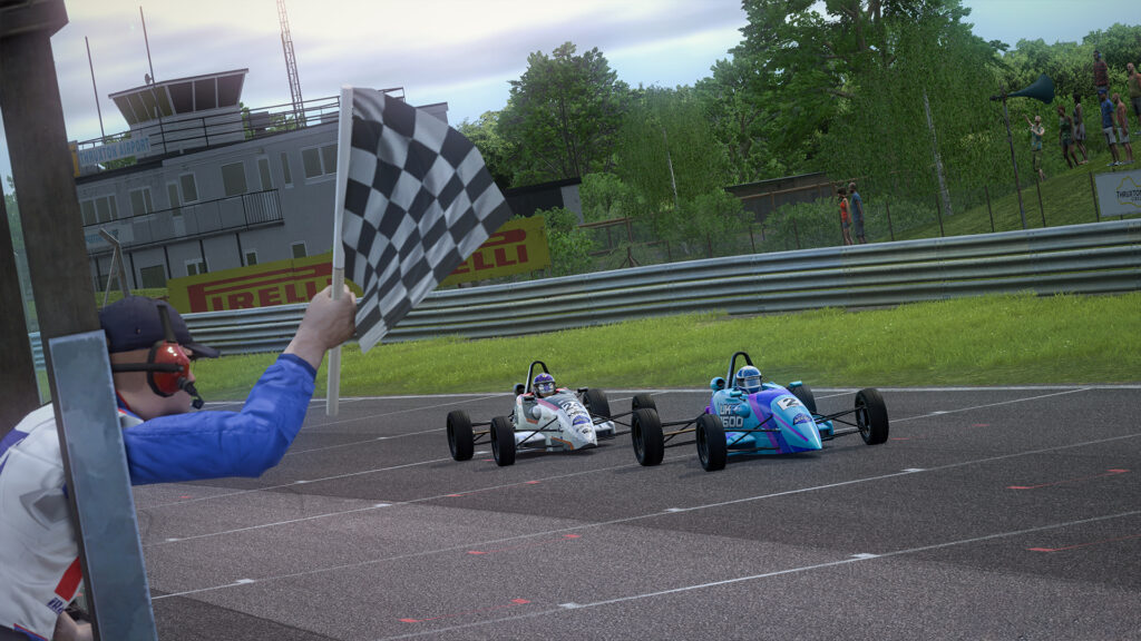 Woodhatch 和 Sherwood 在内侧互相绊倒,而 Bramley 通过在 Club 的外线占据优势,赢得了他在英国 FF1600 Esports 的首场胜利。