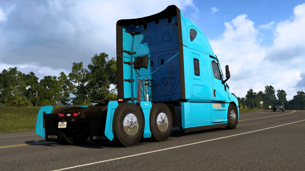 Freightliner 配备了可涂漆的 aridam 和遮阳板,并配有新的内饰选项和盲点传感器,增强了真实感。