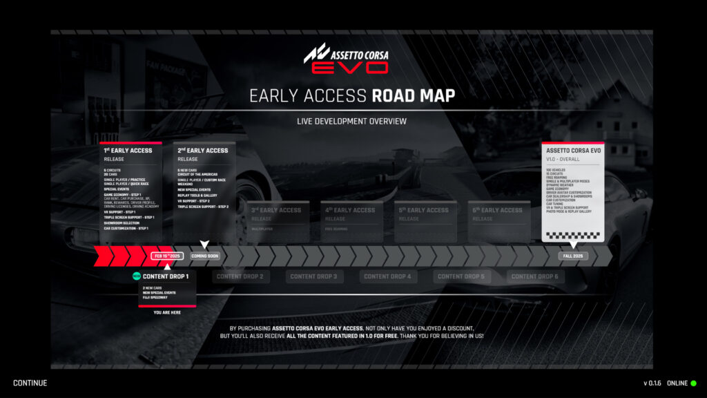 《神力科莎 EVO》路线图又向前迈出了一步,因为“Content Drop 1”已经到来,为抢先体验的驾驶模拟添加了两辆车、一条赛道和一系列小调整。