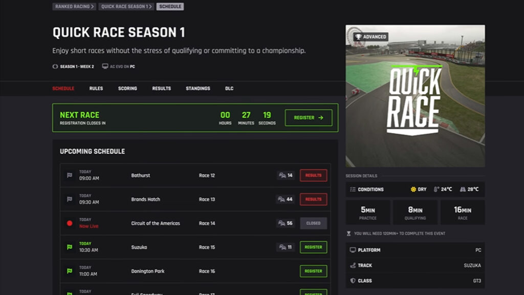 这就是所谓的“每日赛车门户”,它看起来很像现有 SimGrid 比赛管理网站和勒芒终极版 RaceControl 的混合体。