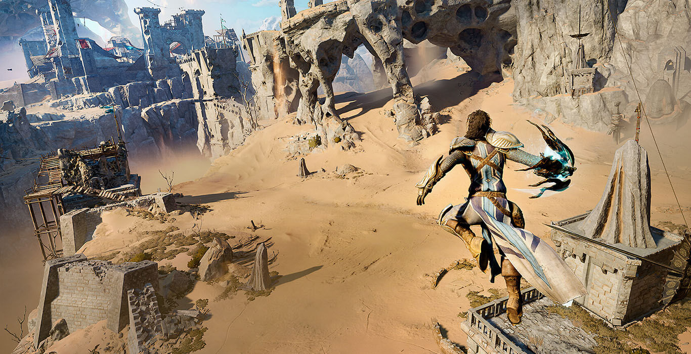虽然游戏是开放世界,但它不是一张连续的地图。相反,它被分成相当广阔的区域,我们将以线性方式进入,但每个区域都有独特的主题风格和大量可选内容,感觉就像我们在一个较小但非常详细且精心制作的沙盒中玩。我们要探索的主要区域之一完全位于地下,是一个沉入沙中的失落文明;这让我想到了大尺度的《波斯王子》会是什么样子。