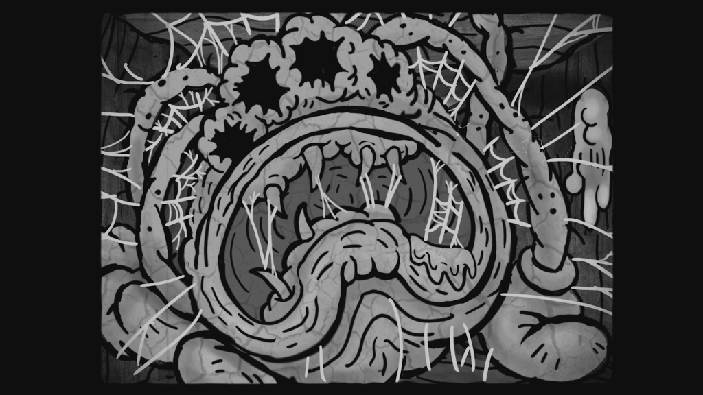 有一个颗粒状过滤器,可以通过设置打开和关闭,使视觉效果像旧电影卷轴一样摇晃和爆裂。混合着怪诞农场动物和昆虫的令人作呕的特写镜头。再加上尖叫声和吱吱声的出色音频组合,令人不安的程度更上一层楼。