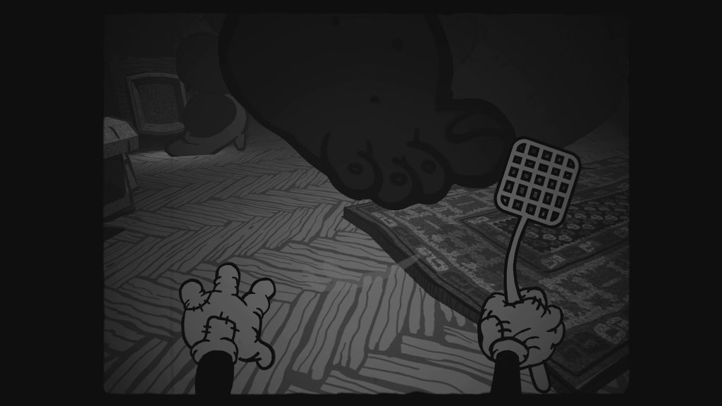 有一点战斗,这与你的家务有关。就像,一开始,你会移除一些蜘蛛网。事实证明,蜘蛛不喜欢你破坏它们的家园。所以你必须用苍蝇拍将它们压扁,然后用真空吸尘器吸走它们的尸体。这导致了一场独特的老板之战。
