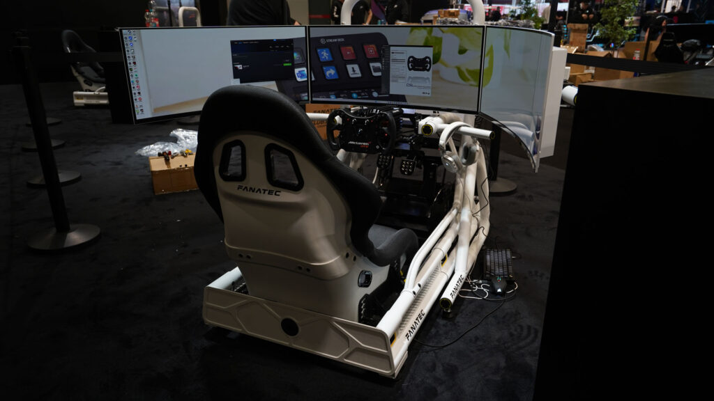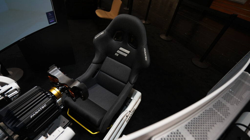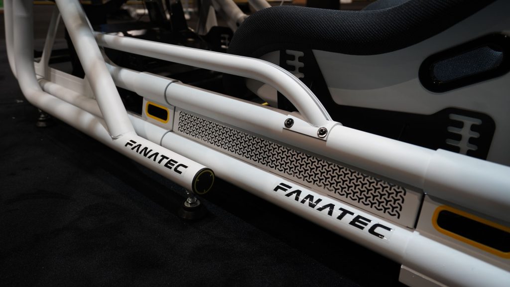 Corsair 的首个模拟装备将于本周在 ADAC SimRacing Expo 2024 上展示,并更名为 Fanatec。几个 Fanatec 标志醒目地展示在钢管上,并绣在座椅上。