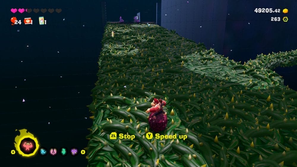 事实上,不仅仅是在战斗中,游戏还引入了大量的机制,而且从来不会让人感到臃肿或多余。而且它们都被实现得非常好。当我第一次遇到新的弹性地形时,我在熔岩遍布的关卡中被击中了。我需要通过弹跳来导航该区域,而且它是如此无缝。开始时很简单,但实施方式的复杂性会增加。我可能会补充说,永远不会达到控制器捕捉困难的程度。 Boss 战和战斗中也是如此。