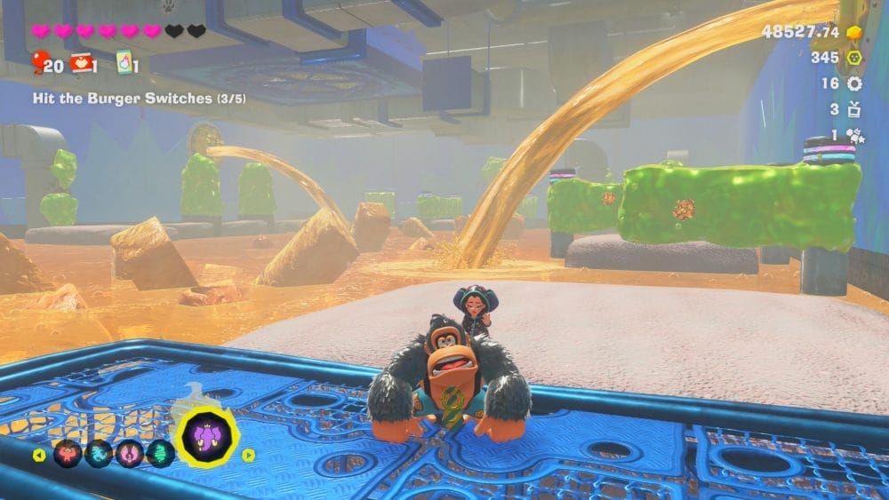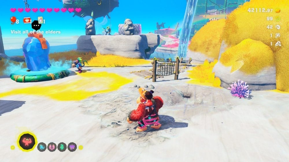 按住 L+R 按钮,您将进入 Bananza(如果您的 Bananenergy 已充电)。 Bananza 的时间有限,但与 Kong Bananza 一起疯狂并破坏一切是非常有趣的。我用得最多的是 Kong 和 Elephant,但它们都有各自的用途。如果你想要 100% 完成,那么你必须利用所有能力,让所有 777 根香蕉分散在整个游戏中。