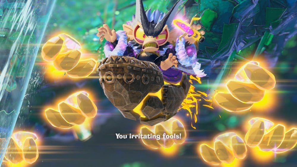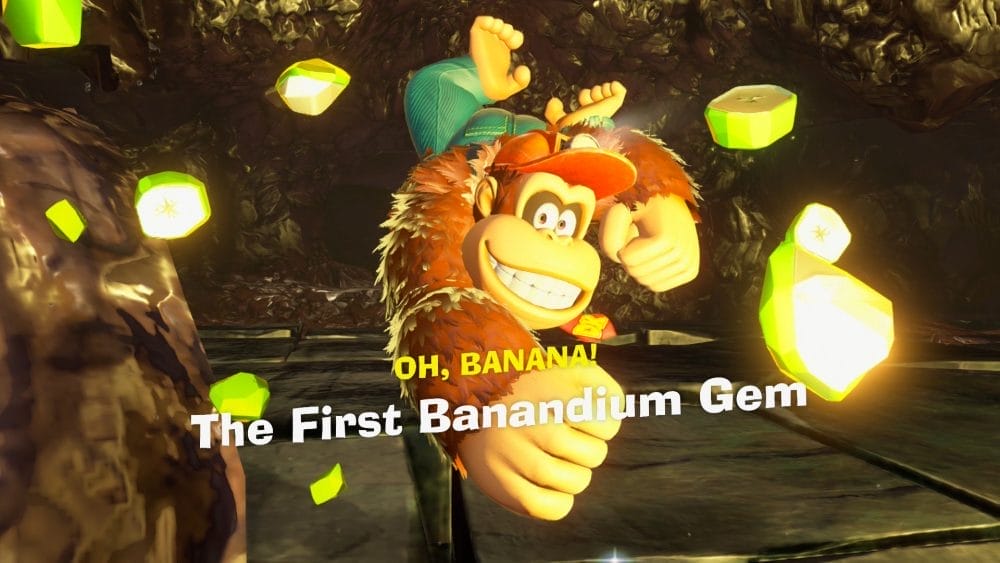 当然,看起来邪恶的采矿金刚正在寻找美味的香蕉根。有趣的是,它可以让 DK 实现他所希望的所有香蕉的梦想!在这一切发生的过程中,一个同伴以一块奇怪的、会说话的紫色岩石的形式出现在你面前。当然,这就是年轻的宝琳,OG Switch 的《超级马里奥:奥德赛》中的歌手。从时间线来看,《大金刚香蕉》的故事发生在奥德赛之前,这款游戏让我们对宝琳成名之前的冒险经历有了一些了解。