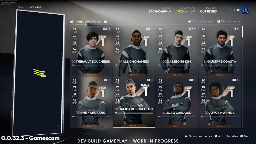 我们还了解了驾驶员选择屏幕和福利系统。每支车队由三名车手、一组机械师和一名工程师组成。随着您的进步,您可以雇用新的团队成员。
