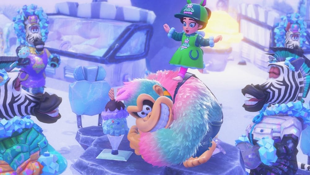 在整个游戏中,你会遇到行星上的巨人长老,他们拥有特殊的能力,巴南扎力量。宝琳可以学习巴南扎力量,当她唱歌时,她可以让大金刚在有限的时间内变身。您可以通过收集黄金来建立您的 Bananergy。您可以根据需要在不同的 Bananza 之间切换。
