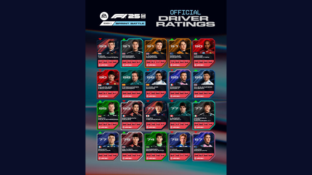 作为第二季推出的一部分,其中包括在线淘汰模式、新的限时挑战和可解锁的迈凯伦涂装,车手评分的变化见证了冠军领头羊奥斯卡·皮亚斯特里 (Oscar Piastri) 的显着进步。