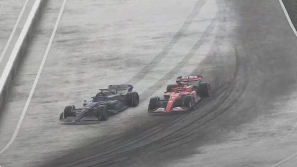 但是,当雨来临时,由于两辆法拉利和威廉姆斯在前面排在后面,两名车手不得不比他们的同事在光头胎上停留多一圈。因此,在第三圈结束时,布鲁曼德和法赫西进站,后者被早一圈进站的托马斯·罗哈尔 (Thomas Ronhaar) 超越。