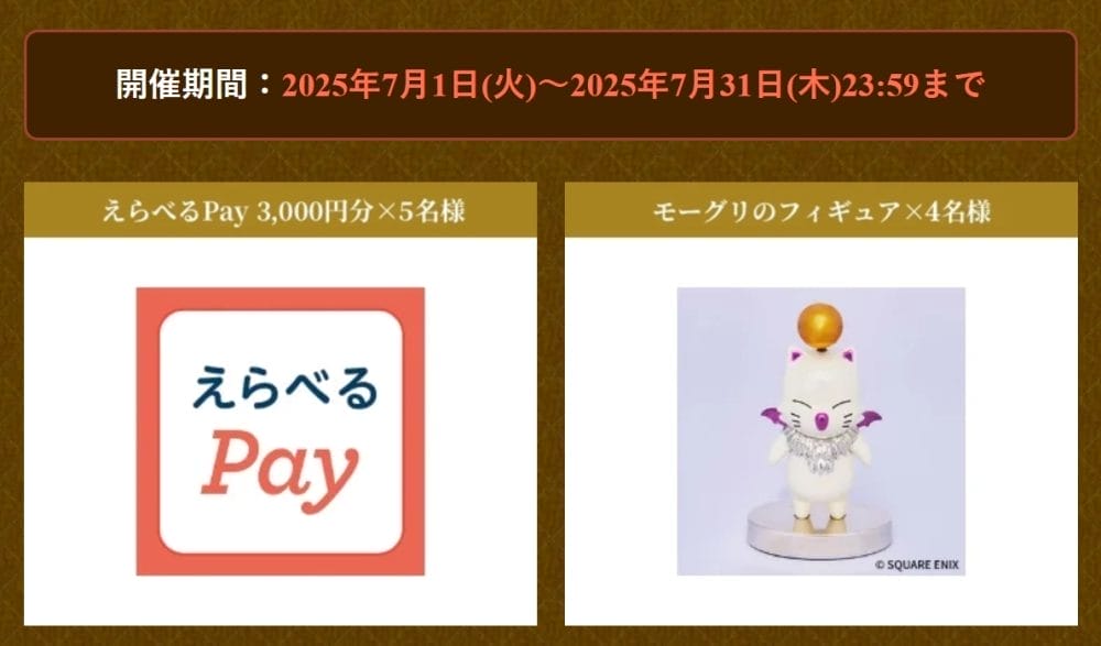 这些公告的最后一个细节是,将会有一场抽奖活动战国 IXA 官方 Twitter/x 帐户其中,四人将获得《最终幻想 IX》中的毛克利模型,另外五人将获得价值 3,000 日元的“Eraberu Pay”。抽签时间为7月1日至7月31日。