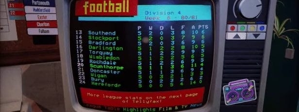 肉豆蔻!故事发生在足球时代,当时的情况更加困难,铲球更加艰难,球员们放弃了护腿板,而且还没有球员统治更衣室。 Steam页面上的这句话让我立即点击了愿望清单:“重温铲球和鲻鱼一样长的日子”。预告片甚至还包含了英国每一个 30 岁以上男性都会认出的东西,即老式图文电视上的现场乐谱。辉煌。