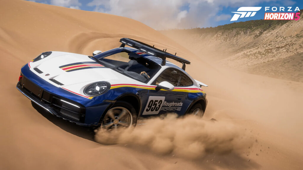 接下来是 911 Dakar,这是一件古董。这款加高四轮驱动越野主题跑车仅生产了 2,500 辆。在现实世界中,它也被明确称为“达喀尔”,但在地平线 5 中,它被奇怪地标记为“拉力赛”。