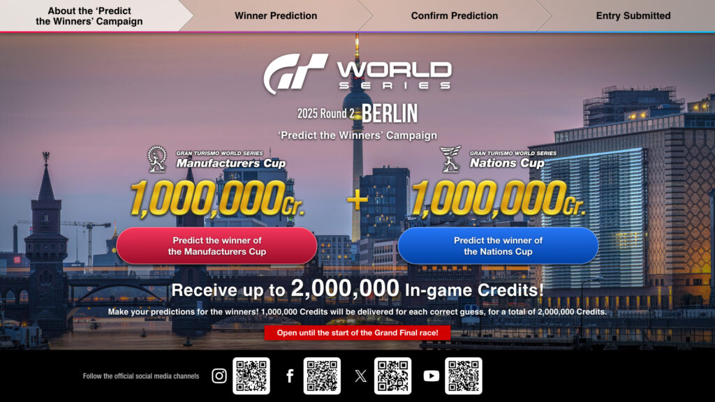 在免费赛车之前,还有“预测获胜者”活动,该活动现已在《Gran Turismo 7》中上线。要参加,只需访问主屏幕,在右上角,可以选择猜测谁将赢得国家杯和制造商杯比赛。