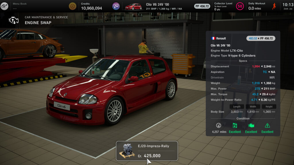 - Renault Sport Clio V6 24V '00 – EJ20-Impreza-Rally – 1994cc,275bhp Flat-4 涡轮增压 – 425,000 积分
