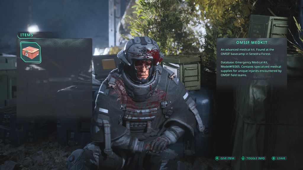 即使这样,数据板也不会告诉您需要做什么,只是告诉您已经找到了它。你必须与 NPC 聊天并使用“交易”选项来查看你可以给他们的物品。在角色上尝试一下并没有什么坏处。他们会告诉你这不适合他们。