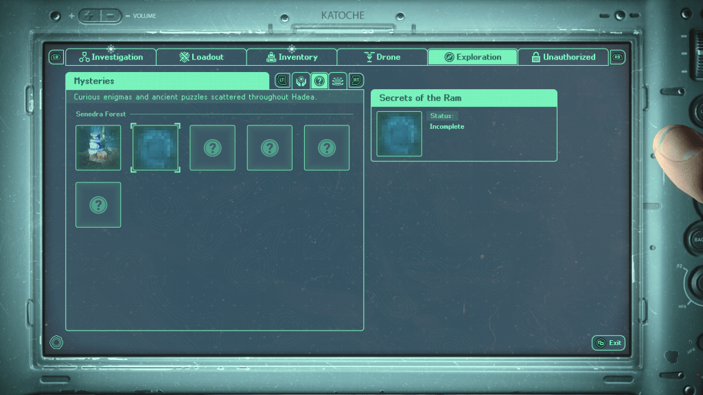 数据板是您的库存,并且具有不同项目的多个选项卡。值得庆幸的是,它有一些有用的功能可以帮助您掌握要收集的所有内容。特别是你的线索、文件和客观物品。您可以“收藏”项目,以便它们显示在其所在菜单的顶部。您还可以在认为完成后“归档”项目,以便它们显示在项目列表的底部。
