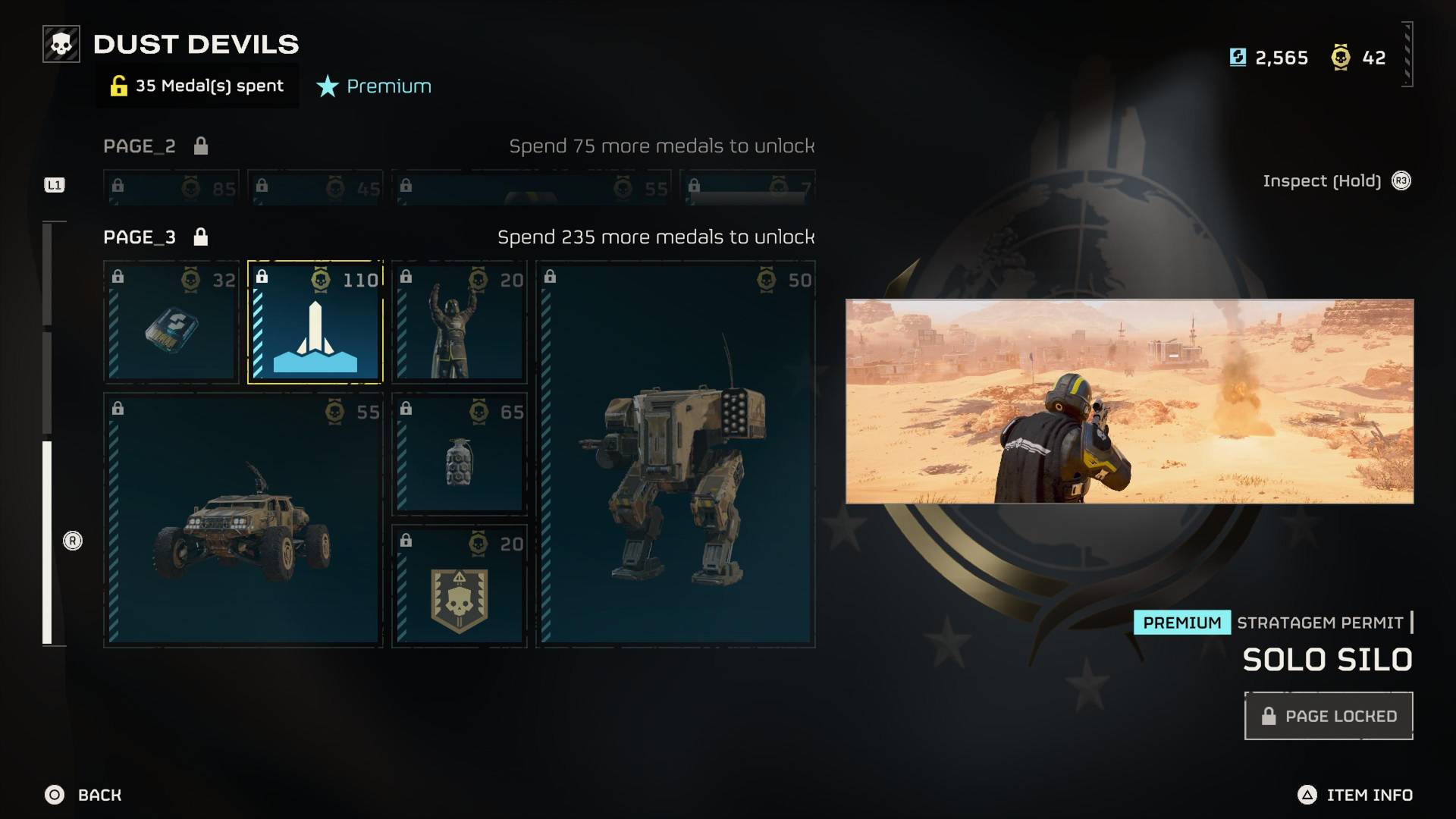 在《Dust Devils Warbond》的最终页面中,还有七个额外的物品需要解锁。总共需要 352 枚奖牌才能完成最后一页。独奏筒仓是一种独特的策略,可以在这里找到,并且对所有派系都非常有用。