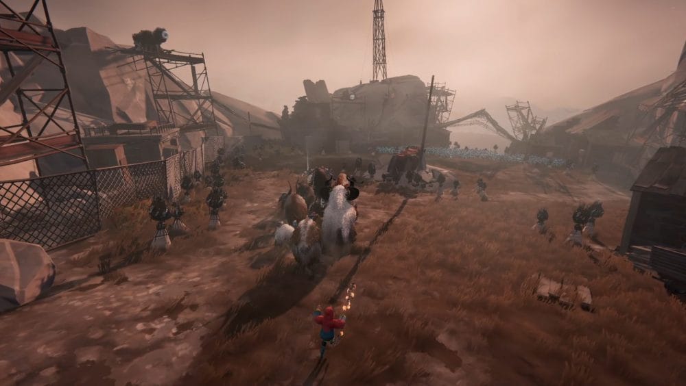 不幸的是,正是在这些更激烈的序列中,我的牧群人工智能发挥了作用,卡在墙上并失去了所有方向感,最终导致我的第一个卡利角兽洛马被杀死。尽管 Okomtive 在 Herdling 中投入了很多出色的设计和辛勤的工作,但似乎所有护送游戏都会处理 AI 路径和行为的问题。这种情况并不常见,除了一些闪烁的纹理和帧率奇怪的下降之外,我对 Herdling 的体验很顺利。
