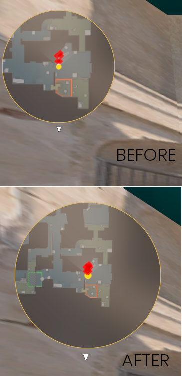 例如,Oleksandr“s1mple”Kostyliev 使用以玩家为中心且变焦为 0.45(稍微缩小)的雷达。启用雷达旋转(因此它始终以您的视野为导向)可以让您在激烈的比赛中更容易阅读。尝试打开“旋转”并将“播放器居中”打开,然后根据您的喜好调整雷达比例(缩放)。这样,您就可以在局部细节和整体地图覆盖范围之间取得良好的平衡。