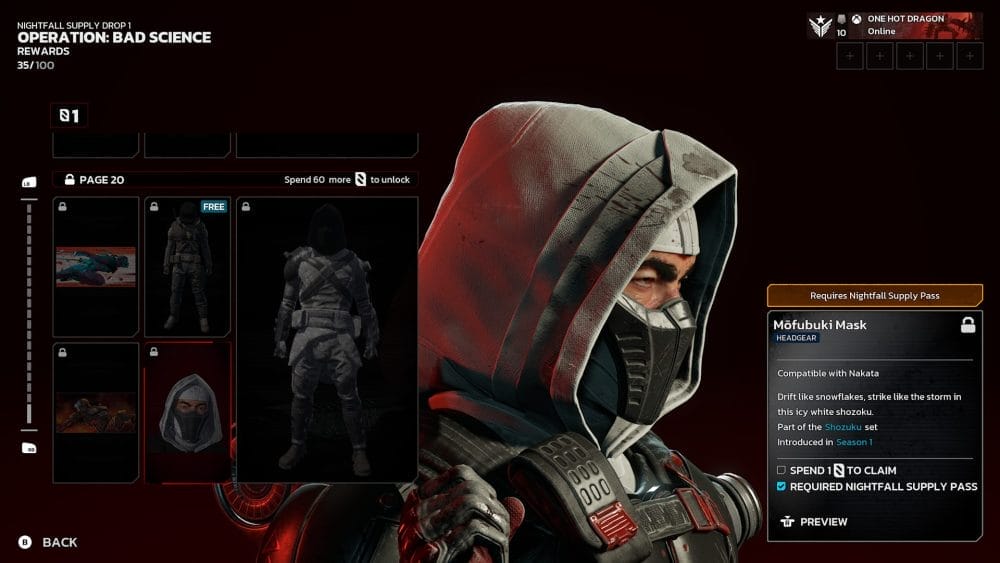 战斗通行证的问题是,第1季中的项目无需写回家。赛季结束时大奖是一件白色的忍者服装,这很酷,但这可能是唯一很酷的事情。