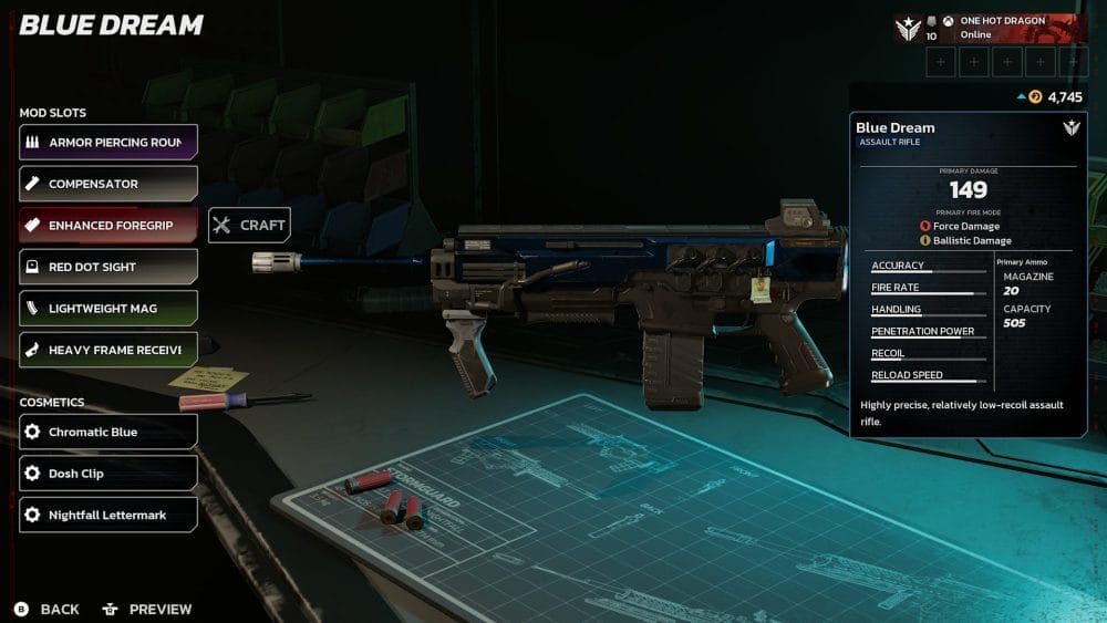每种武器都可以选择添加多个附件,例如枪口,磁和瞄准镜。您也可以换成子弹的框架和类型。那就是您进入重大变化的地方。您可以用不同的子弹向武器添加元素损坏,也可以通过更改框架来更改枪支射击的方式。
