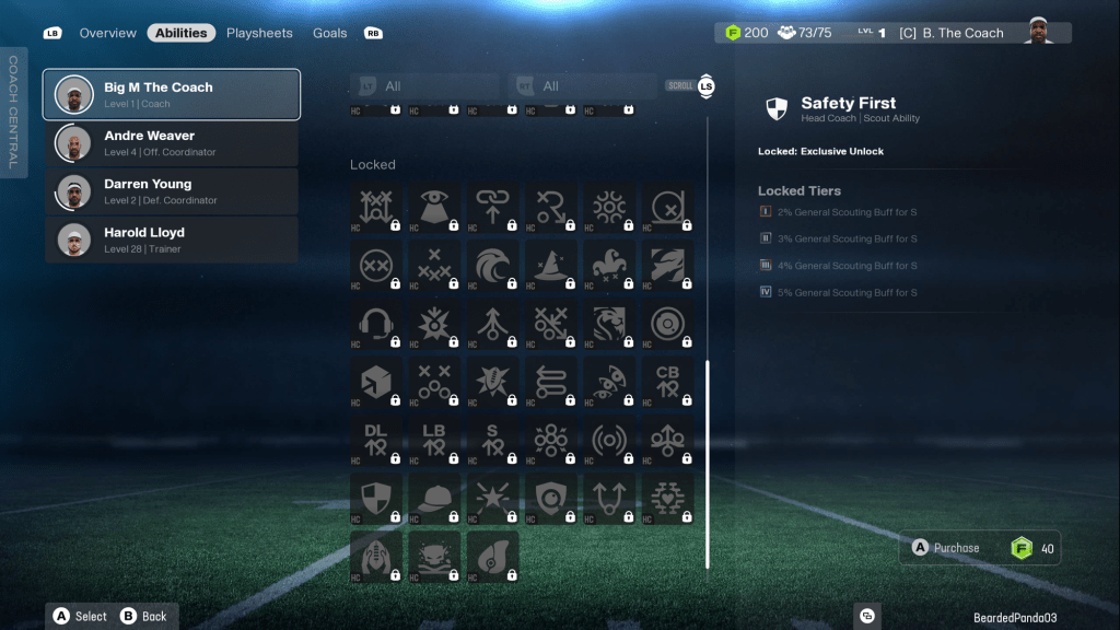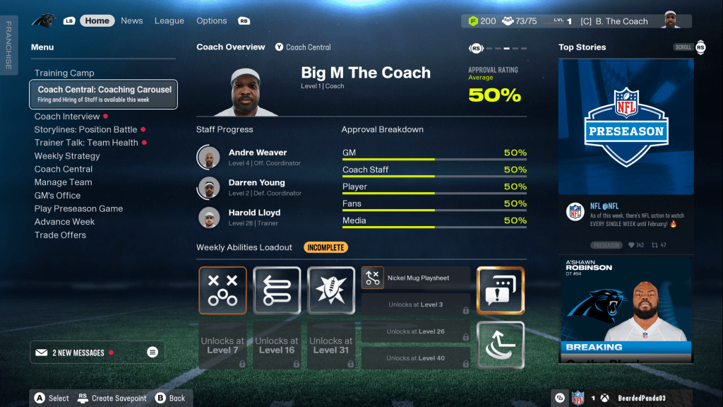 技能树在《Madden NFL 26》中回归,与去年相比有了很大的升级。您可以使用技能点来解锁和升级可以在比赛日使用的能力。就像大学橄榄球一样,今年你的协调员变得更加重要。由于你无法仅仅聘请联盟中最好的协调员,因此你必须在他们的发展中具有战略性。如果你正确地发展它们,你的协调员将会并且应该弥补你作为教练的弱点。虽然我选择成为一名进攻大师,但我确保投入大量资金来充实我的防守协调员的技能树。