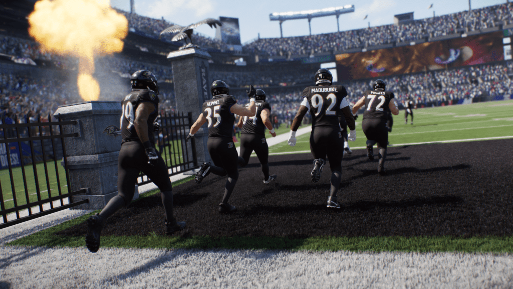 更新后的解说团队增添了新鲜活力,以一种真实且对现场事件做出反应的方式讨论比赛情况。黄金时段的比赛确实感觉就像黄金时段的比赛,从外观、声音和感觉来看,周四、周日和周一晚上的比赛就像在电视上一样。 《Madden 26》以团队特定的仪式、赛前和介绍为特色。