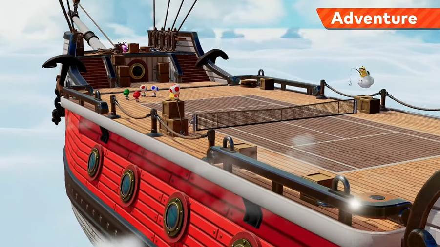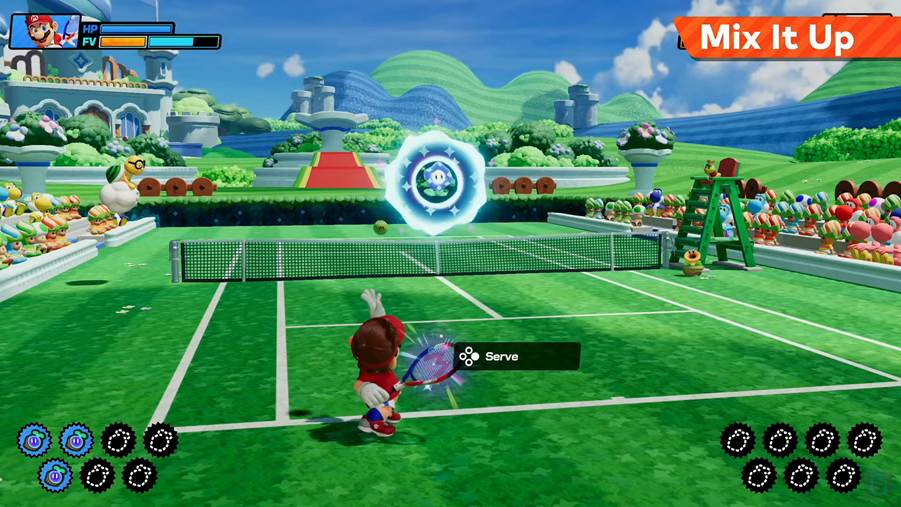 《马里奥网球狂热》带来了新奇有趣的游戏模式,包括锦标赛模式,超级马里奥奇迹之花担任球场解说员。