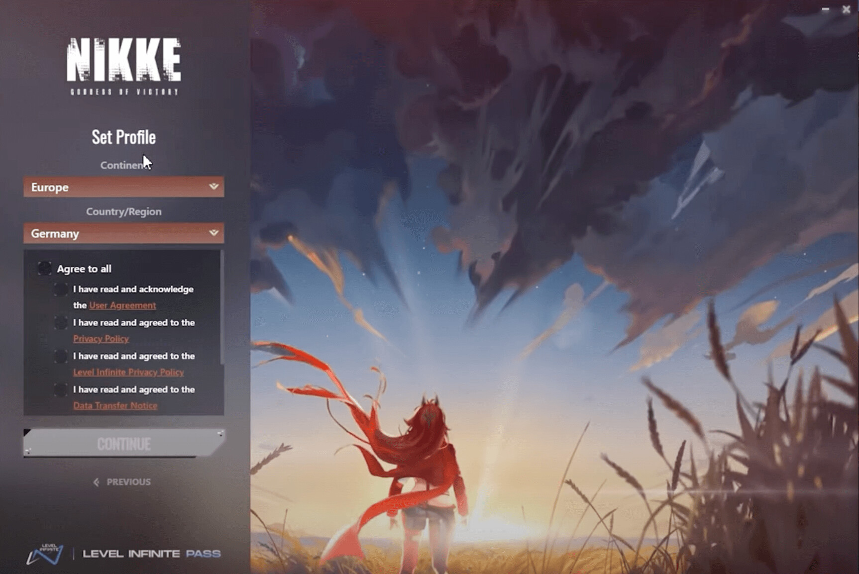 下载并安装启动器后,您就可以启动它。您需要创建一个 Nikke 帐户,选择您所在的地区,并填写其他详细信息。如果您已有帐户,则只需登录现有帐户即可。