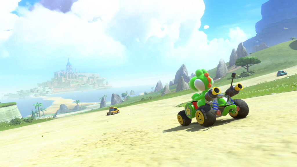 令人惊讶的是,当你启动《马里奥赛车世界》时,其自由漫游模式与主游戏是分离的。它甚至不是主菜单选项。相反,按下 + 按钮会立即激活从菜单视频背景无缝过渡的自由漫游。从这里,您可以按照自己的节奏自由驾驶,探索不同的地点并快速前往赛道。