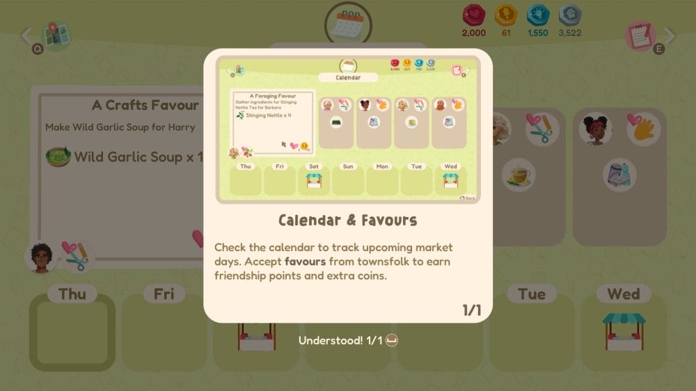 知道如何做才能发展与城镇居民的关系也很简单。日历系统允许您跟踪这一情况并计划您的日子。游戏无需您自己猜测或跟踪,而是以清晰的方式为您提供信息。