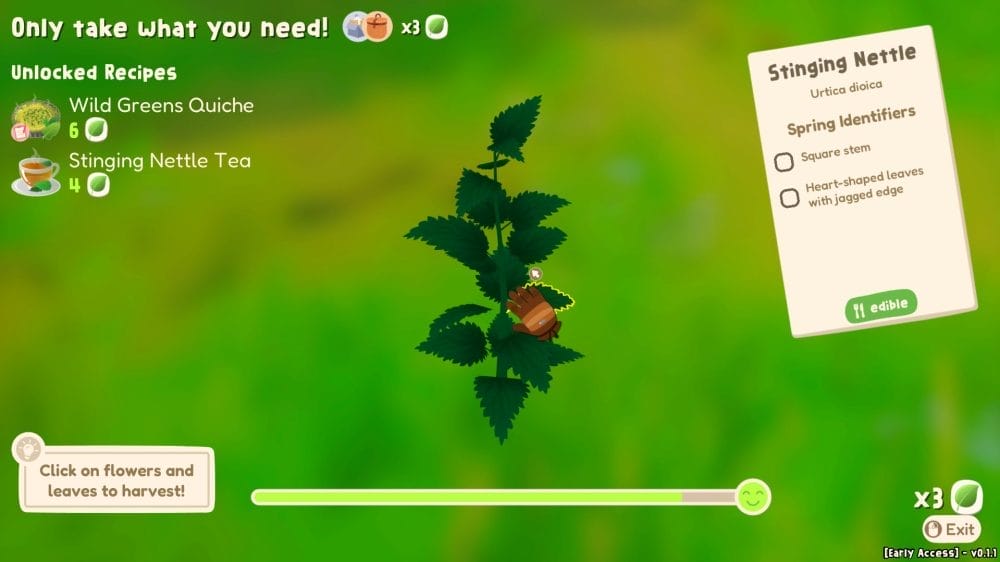 虽然游戏计划拥有 100 多种真实植物,但抢先体验版已经引入了其中 50 种。游戏还使用这些植物和真菌来制作现实世界的食谱,如果您愿意,您可以重新创建这些食谱。因此,虽然我们不能完全说游戏在完整版本中看起来会非常不同,但我们今天已经可以看到很多基础工作。我们可以确认,这里非常拥挤。