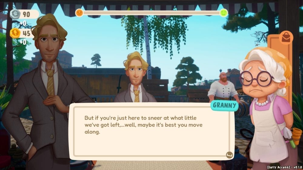 一旦你进入自由漫游模式,你就可以自己觅食,并且每隔几天就设置市场摊位。在空闲时间,你会为镇上的人提供帮助,以建立与他们的关系。他们也会向你敞开心扉。最终,哈利将不再为他的搅拌机哭泣,并开始考虑他的其他选择。不断解锁地图上的新区域以获得更多物品,以获得更多食谱和更好的物品在市场上出售。与城镇居民交朋友,并在套装将其撕裂之前帮助恢复城镇。