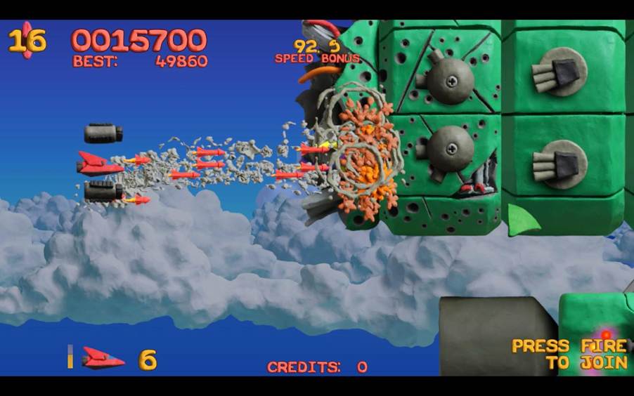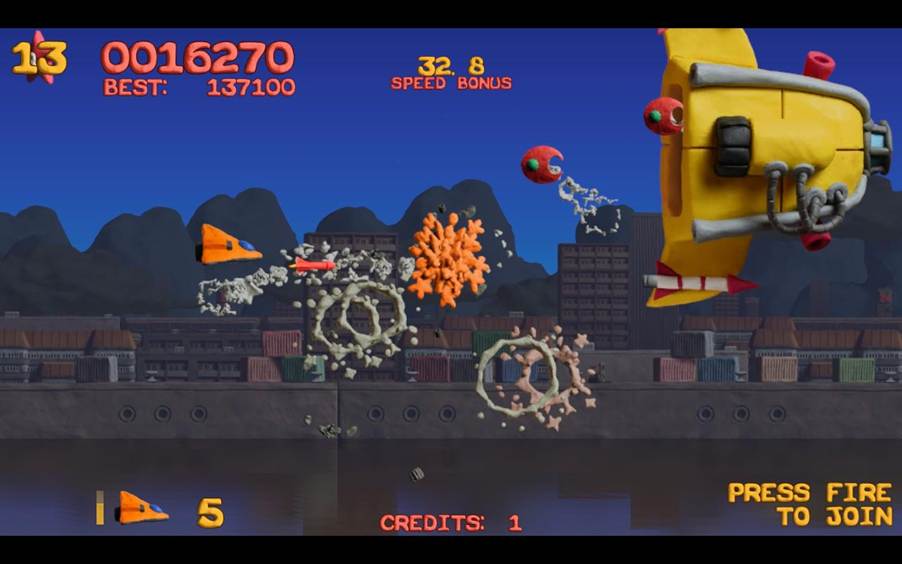 虽然鸭嘴兽的敌人的粘土艺术风格通常看起来很可爱,但不要被误导。其中许多敌人都具有真正的攻击力,能够用激光、子弹淹没您的屏幕,或者干脆神风特攻队冲向您的小型 F-27 鸭嘴兽飞船。我不记得原作中的多样性,每个敌人都有自己的移动模式和射击方法。每个阶段都会引入新的敌人来学习和掌握,我向你保证,有些是非常难以避免的。
