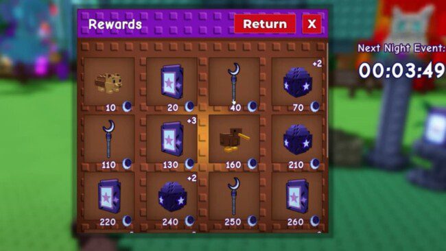 以前,让Roblox的夜间工作人员的唯一方法是赚取40、110、250和360点。这是通过在月球发光事件期间向聪明的老猫头鹰提供月光或血液液的水果来完成的。每个里程碑都提到的,尽管还有其他奖励,但也有更多的夜间工作人员奖励了球员。但是,此事件已经结束。