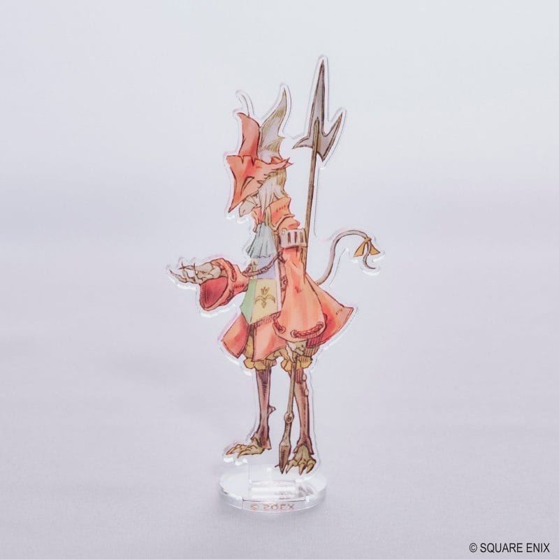 最终幻想 IX 25 周年纪念商品系列的最后一个补充是两套带插图的亚克力支架,同样由 Toshiyuki Itanashi 创作。这两集的主角是缅甸龙骑兵芙蕾雅和最好的黑魔法师维维,还有他的朋友和坏影响力的鼠小子。
