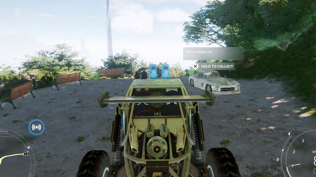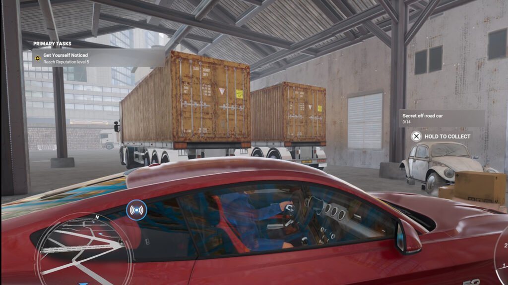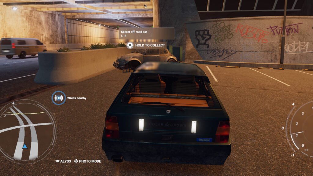 残骸是一辆隐藏的汽车,处于破旧状态。找到一辆将计入两辆已完成的汽车中的一辆。它们的位置并未在游戏地图上精确指出,但如果您偶然开车靠近其中之一,屏幕上就会出现一条通知,距离越近,蜂鸣声就越快。