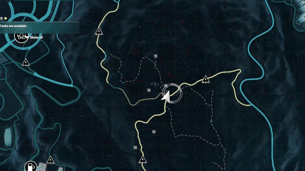 驶向小建筑物,路径的虚线将出现在您的地图上。跟随最长的一个。一路上会遇到一个人,选择左边的那个。这是一条很长的路。一路行驶直到终点才能找到残骸。