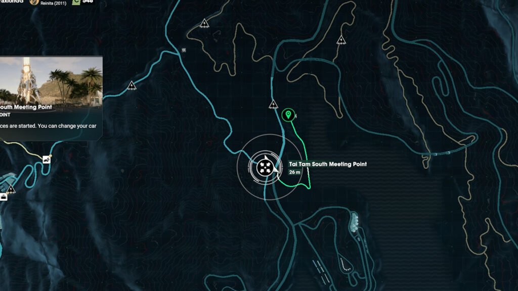 一旦您开始沿着土路行驶,虚线就会出现在地图上。这将引导你穿过沙子和水,而在另一边的树林里,就是沉船残骸。