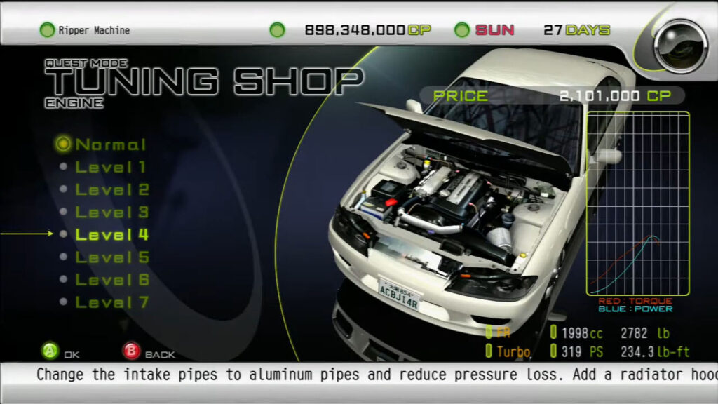 《东京公路之战》允许玩家购买并手动安装涡轮增压器、排气管和悬架等升级件,每一次修改都会影响你的汽车的性能或操控性——这对于早期 PlayStation 赛车手来说是一项了不起的壮举。您甚至可以修改 ECU 以取消最高速度限制。