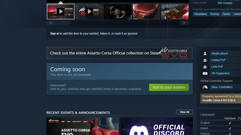 Asetto Corsa EVO 预计将于今天(1 月 16 日)发布,但在撰写本文时尚未上线。