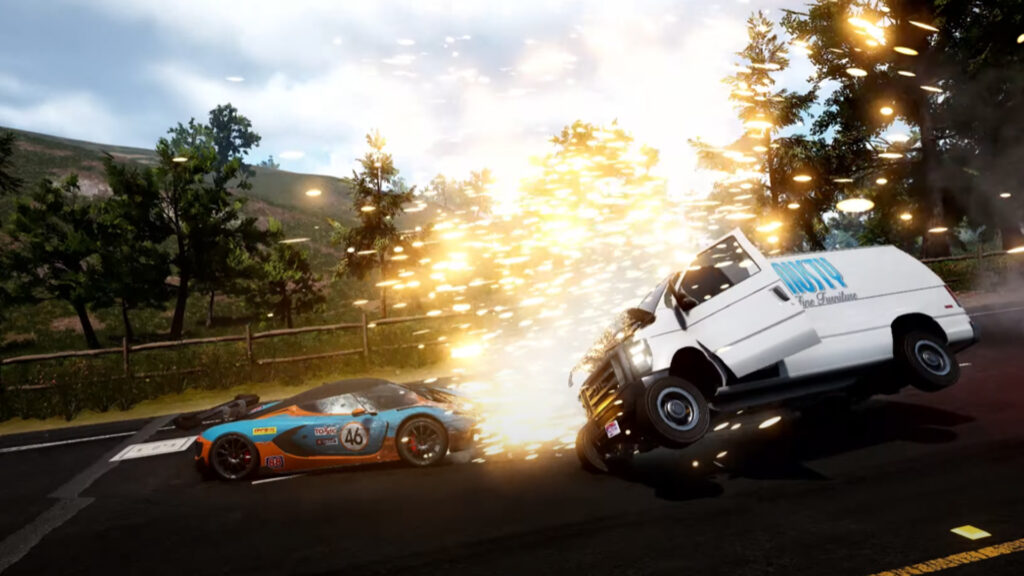 随着您的车辆受到更多的惩罚,零件会变得松动和分离。 “门和引擎盖可以飞开,我们甚至添加了一种让玩家再次关上门的机制,我们已将其转变为游戏时刻,”斯佩里补充道。