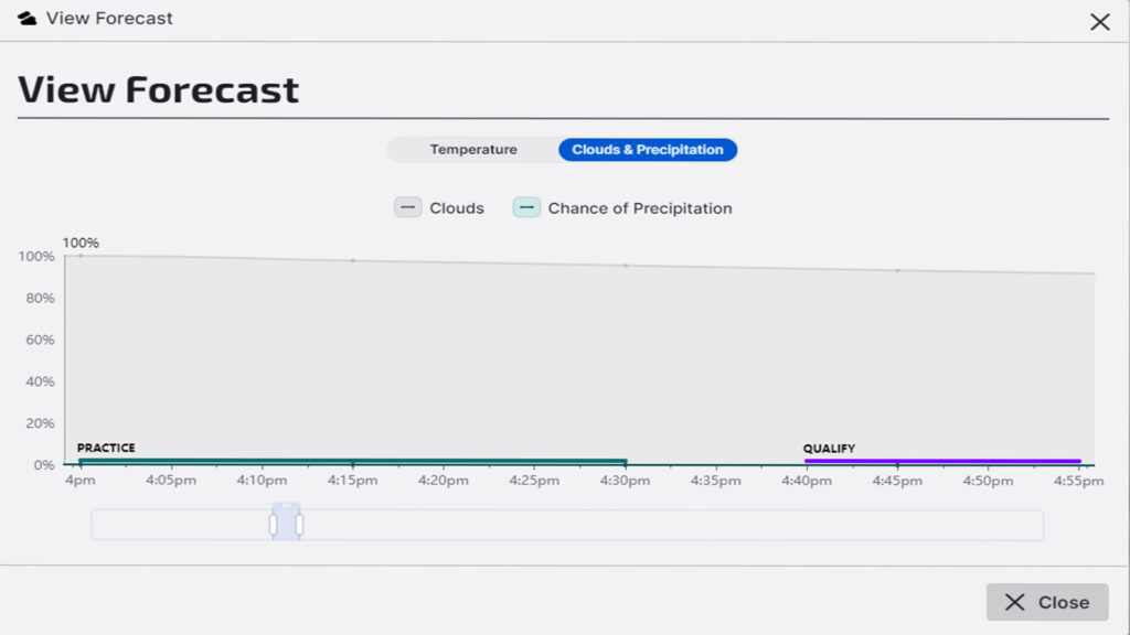 目前,iRacing 24 小时斯帕特别赛事下雨的可能性为 0%,持续阴天的可能性很高。