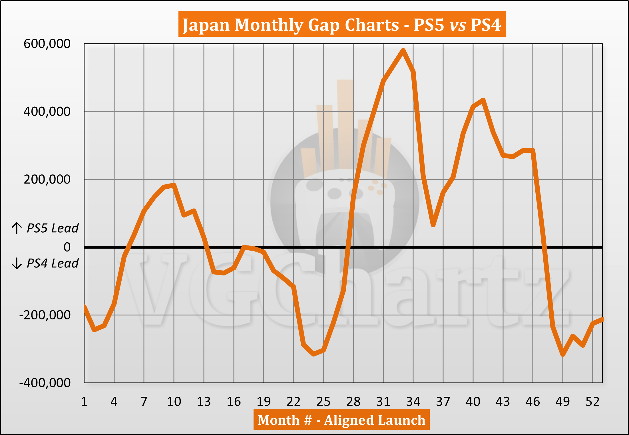 2025 年 3 月是 PlayStation 5 上市的第 53 个月。最近一个月,与同步推出的 PlayStation 4 相比,PlayStation 5 的差距扩大了 12,779 台。