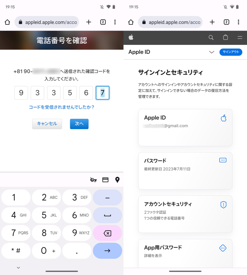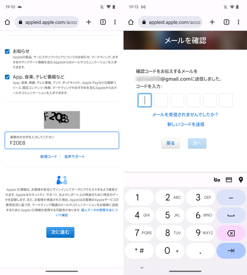 (左)输入屏幕上显示的字符串(右)确认码将发送到您的电子邮件地址。